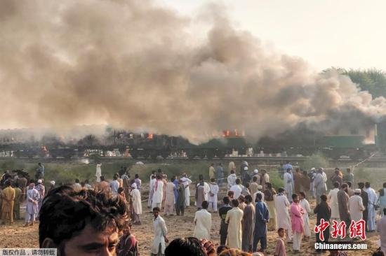當地時間10月31日,巴基斯坦旁遮普省一列火車失火,大量民眾聚集在事發現場。