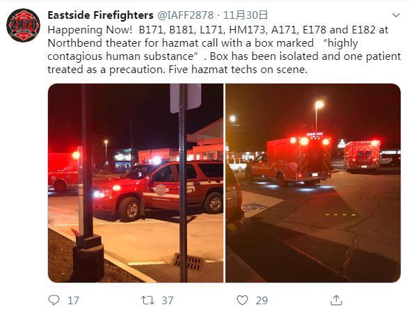 據報道,大約一小時后,包裹內的物質經判斷是人體尿液,本來應該送往80公里以外在塔可馬市(Tacoma)一家醫療診所,卻被錯送到電影院,惹出一場虛驚,相關單位已予棄置處理。