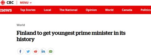現年34歲的馬林將在未來幾天內接替安蒂⋅林內,就任總理一職。加拿大廣播公司(CBC)報道稱,屆時,馬林不僅將成為該國有史以來最年輕的總理,也將成為世界上最年輕的總理。此外,她還是芬蘭的第三位女性領導人。