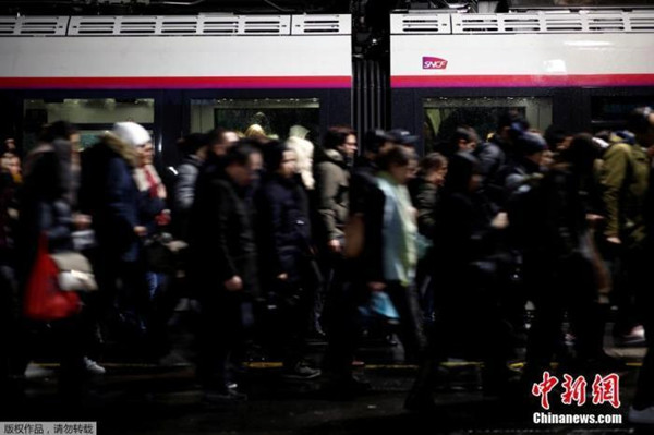 當地時間12月15日,巴黎的公共交通幾乎停滯,16條地鐵線路中只有兩條在運營,大部分國營鐵路服務被取消。