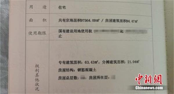 房本上寫著房屋建筑面積、專有建筑面積和分?jǐn)偨ㄖ娣e。中新網(wǎng)記者 邱宇 攝