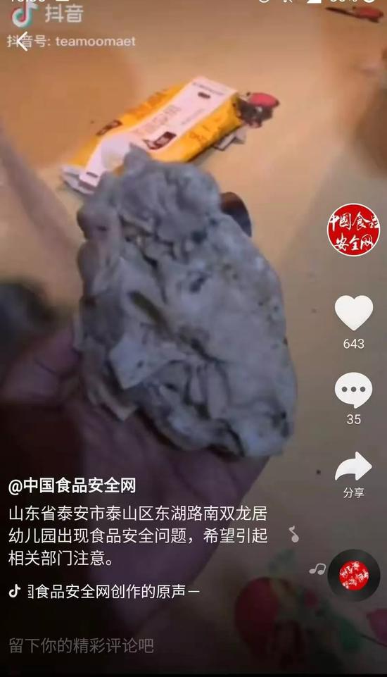 面對(duì)這種說法,有家長立刻予以駁斥,“為什么給老師吃?老師就不是人?”而且也有家長表示,幼兒園就這么一個(gè)廚房,所有的食物都放在一起,有的食品發(fā)霉了,其他食物肯定也攜帶了霉菌,怎么能保證孩子沒有吃到?