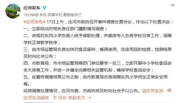 17日上午,莊河市政府召開事件調(diào)查處置會議,作出以下處置決定: