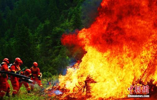 森林消防員近距離直流噴射滅火作業(yè)。 裴海博 攝