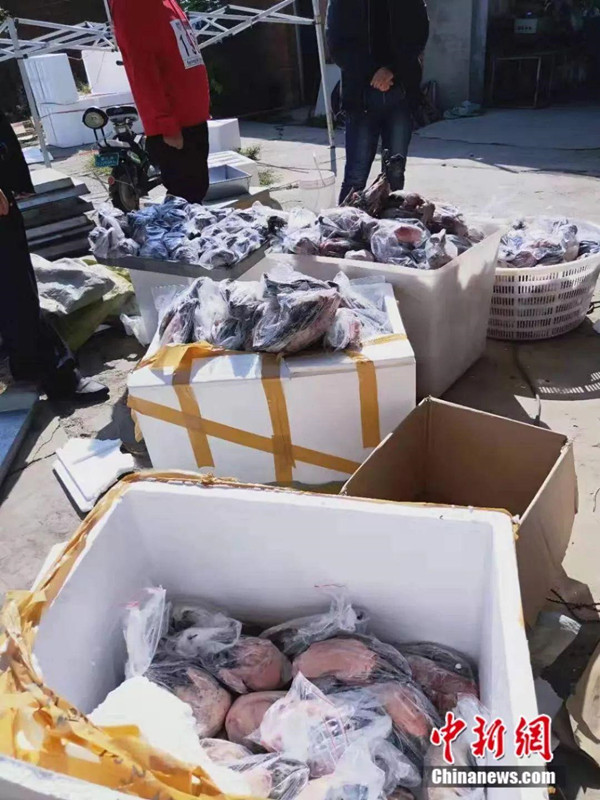 劉懿丹一面與經營者周旋,一面讓守候在外面的同事報警,當地警方迅速出動,現場清點出187只骨頂雞和145只野鴨死體。