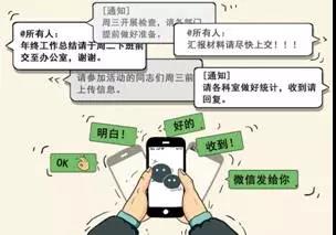 微信等工具方便大家溝通交流,提升工作效率。一些領導干部認為通過微信群下發通知、安排工作既方便快捷,又節約了工作成本,熱衷于“群里一聲吼,工作布置走”。任務在群里安排,通知在群里層層轉發,“群上安排、群上指導、群上培訓、群上回復”成了常態。而黨員干部在群里各種回復“收到 ”,各種“匯報”工作,有的一天僅回復‘收到’兩個字就有數十次。布置工作的速度快了,但是卻少了面對面的溫度。“通知……收到……匯報”全在網上進行,工作成了從群里來到群里去,領導將工作往微信群里一布置就當起了“甩手掌柜”,干部進了微信群而遠離了人群,助長了形式主義、官僚主義。