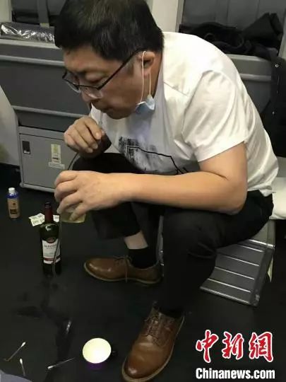 整整37分鐘,張醫生不間斷為旅客吸出尿液,吐到杯中,肖醫生也不停根據膀胱積尿情況調整穿刺位置和角度,確保最大限度排出積存尿液,乘務組也及時更換杯具,將排出尿液導入酒瓶,實時測量已排出尿量,幫助醫生更好掌握旅客病情。兩位醫生與乘務長配合默契,緊張卻十分有序地推進救治。