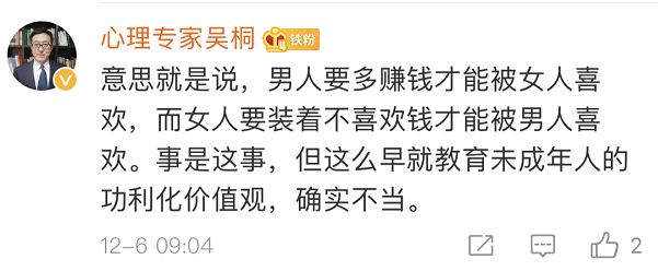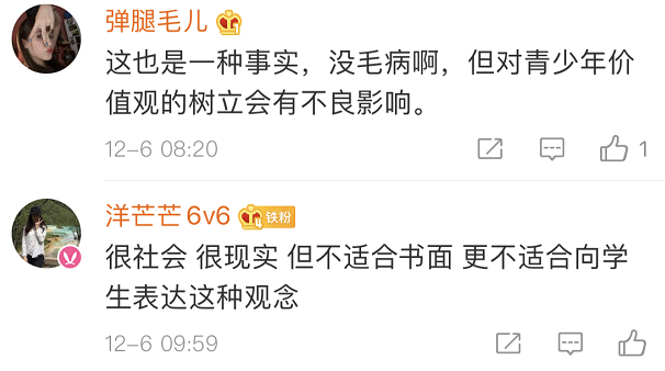 也有網友覺得,出發點是好的,內容在成人看來或許有其“合理性”,但不應該拿來這樣教孩子。
