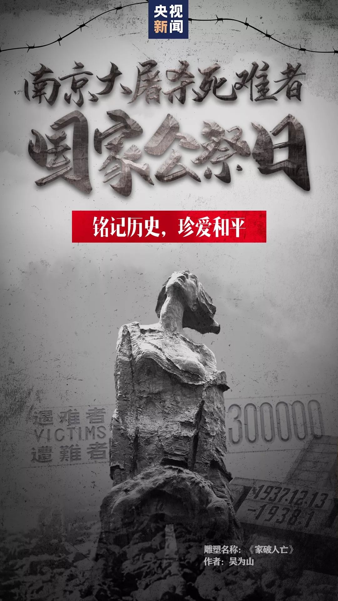 今天是國家公祭日,如果你在南京街頭,聽到鳴笛聲響起,請停下腳步,為逝去的同胞默哀一分鐘。愿戰爭之火長弭,和平之花常開。