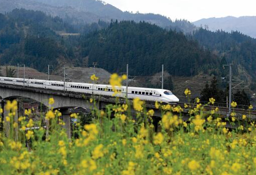 1月20日,榕江縣平江鎮(zhèn)加會(huì)村,一列動(dòng)車(chē)組列車(chē)駛過(guò)。 王炳真 攝