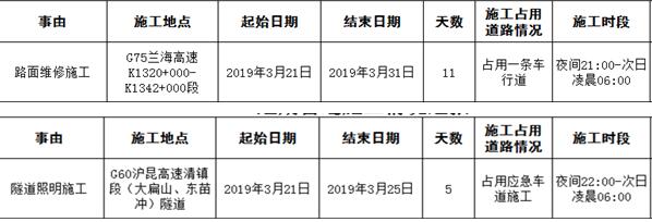 3月21日,記者從貴陽市公安交通管理局網(wǎng)站獲悉,近期蘭海高速、滬昆高速部分路段臨時占用道路施工,提醒過往車輛小心避讓。