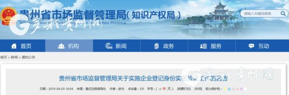 4月3日,貴州省市場監督管理局發布公告稱,為有效防控通過冒用他人或虛假身份騙取登記注冊的違法行為,貴州省于2019年4月15日起,在全省范圍實行企業登記身份管理實名驗證。