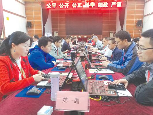 閱卷現(xiàn)場(chǎng),212位老師正全神貫注地盯著各自桌上的筆記本電腦,手邊放著一個(gè)長(zhǎng)方形的打分鼠標(biāo)。閱卷現(xiàn)場(chǎng)鴉雀無(wú)聲,閱卷組長(zhǎng)也認(rèn)真地看著自己桌上的電腦,電腦上顯示著每位閱卷老師的閱卷情況,“情況”是用坐標(biāo)表示。