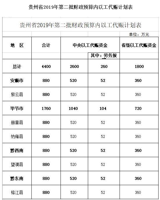 據貴州省發改委網站消息,根據《國家發展改革委關于下達2019年度第二批財政預算內以工代賑計劃的通知》(發改地區﹝2019﹞890號)文件精神,省發改委下達2019年度第二批財政預算內以工代賑計劃,有關具體事項如下: