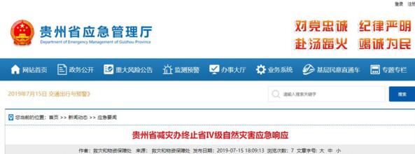 據(jù)省應(yīng)急管理廳網(wǎng)站消息,鑒于我省近期持續(xù)性強(qiáng)降雨天氣過程已經(jīng)結(jié)束,全省災(zāi)情總體趨于穩(wěn)定,救災(zāi)工作基本轉(zhuǎn)入常態(tài),根據(jù)《貴州省自然災(zāi)害應(yīng)急預(yù)案》規(guī)定,省減災(zāi)委員會(huì)辦公室決定,于7月15日12時(shí)終止省Ⅳ級(jí)自然災(zāi)害應(yīng)急響應(yīng)。(邵夢洋)