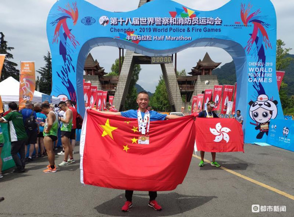 此前,在8月9日世警會鳴槍開鑼的首項賽事半程馬拉松比賽中,向東與隊友一道,戰勝了來自31個國家的諸多好手,斬獲男子50+年齡組團體金牌,并獲得該年齡組個人第四的好成績。