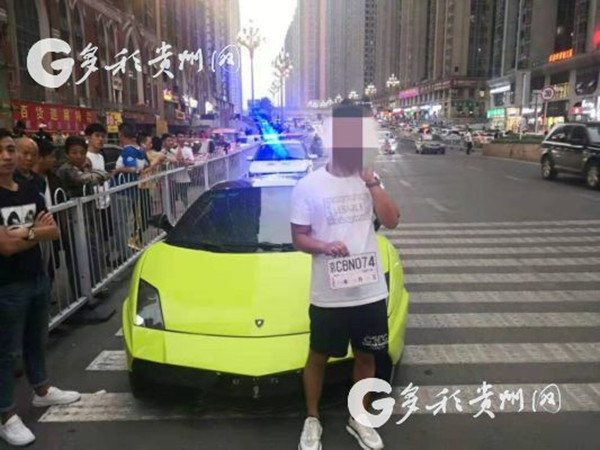 8月28日18時許,貴陽市公安交通管理局南明區分局七中隊民警陳飛飛正在花果園公園中路巡邏時,一輛違停的無牌蘭博基尼跑車引起了他的注意,在對車輛進行檢查時發現,該車使用的是臨時牌照,透過玻璃看到是京C的臨牌,并且有效期至8月24日,已過有效期。
