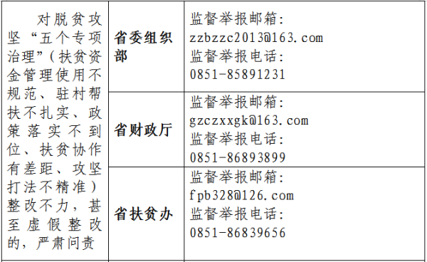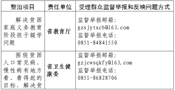 按照中央、省委關于在“不忘初心、牢記使命”主題教育中開展專項整治的要求,近日,省紀委省監委機關牽頭制定了《貴州省在“不忘初心、牢記使命”主題教育中專項整治漠視侵害群眾利益問題工作方案》,部署開展對四個方面19項突出問題的專項整治。此次專項整治聚焦扶貧領域腐敗和作風問題,聚焦教育醫療、環境保護、食品藥品安全等民生領域侵害群眾利益問題,聚焦發生在群眾身邊的不正之風和“微腐敗”問題,聚焦統計造假問題,著力解決群眾最關心最直接最現實的利益問題,密切黨同人民群眾的血肉聯系,不斷增強人民群眾的獲得感、幸福感和安全感。為方便群眾參與監督和反映問題,省紀委省監委機關向社會公布專項整治受理群眾監督舉報和反映問題方式。