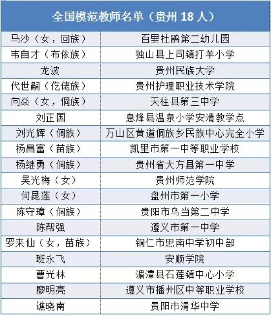 下面跟小編一起看貴州上榜老師和學校具體名單↓↓