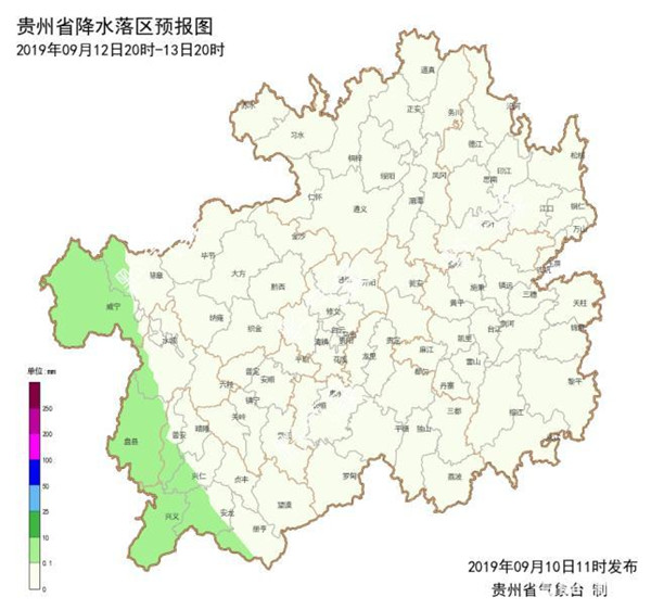 貴州省氣象臺預計,10日夜間到11日白天,西部地區(qū)陰天間多云有陣雨或雷雨,局地有中到大雨,個別鄉(xiāng)鎮(zhèn)有暴雨,其余地區(qū)陰天間多云有分散陣雨;11日夜間到12日白天,西部地區(qū)陰天間多云有分散陣雨,其余地區(qū)多云;12日夜間到13日白天,全省各地多云為主。