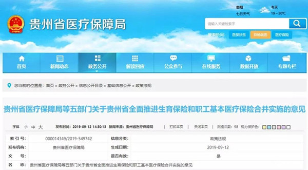 貴州省醫療保障局等五部門關于貴州省全面推進生育保險和職工基本醫療保險合并實施的意見