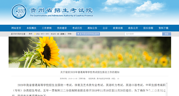11月5日下午,都市新聞記者從省招生考試院獲悉,2020年我省普通高等學校招生全國統一考試、體育及藝術類專業考試、英語聽力考試、英語口語考試、中職生報考高職(�?�)分類招生考試、五年一貫制和三二分段制轉錄報名將于2019年11月10日至11月20日進行。
