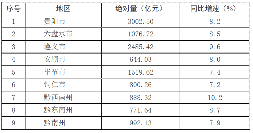 2019年前三季度貴州省市(州)地區(qū)生產(chǎn)總值情況表