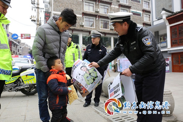 交通民警向過(guò)往群眾發(fā)放春運(yùn)宣傳資料