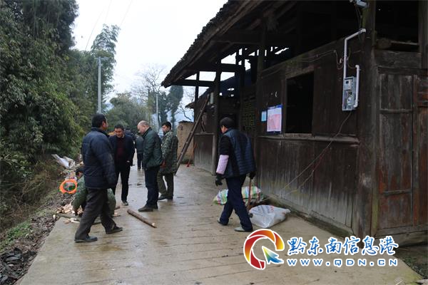 2月22日,姚紹林家中熱熱鬧鬧,政府干部、左鄰右舍一起幫助姚紹林搬東西,施工隊四周檢測房屋,對損壞地方進行拆除,并認真測量房屋尺寸加工木材,現場對姚紹林房屋透風漏雨整治工作如火如荼進行中。