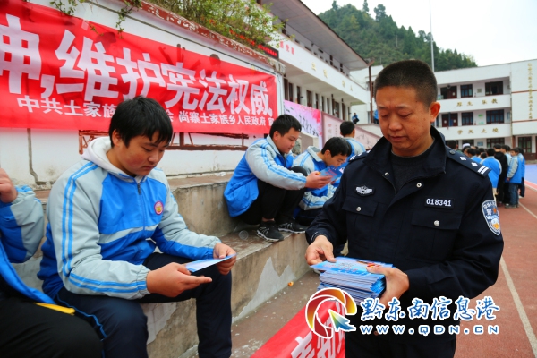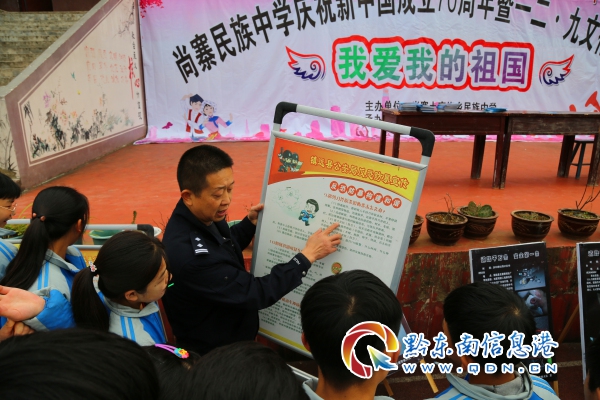 鎮遠公安尚寨派出所所長向同學們講解反恐防暴知識,發放宣傳資料