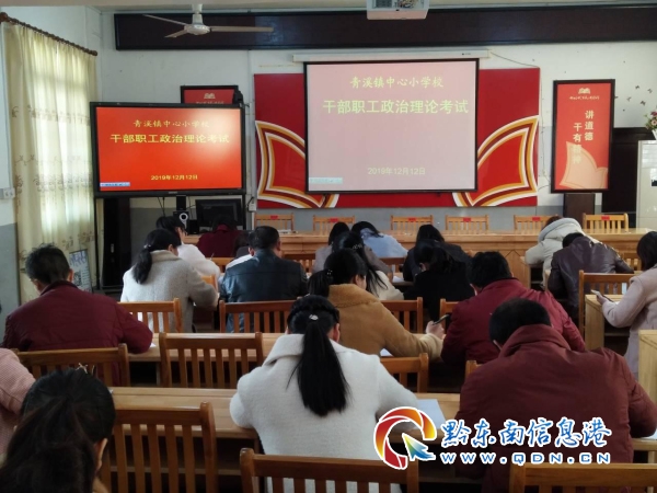 此次考試為各單位自行設立考場組織開展考試,考試時間根據工作實際確定,考試內容結合“不忘初心、牢記使命”主題教育,包含黨的十九大精神、脫貧攻堅、掃黑除惡等內容。考試期間,各位干部認真閱卷,仔細思考,細心答題,嚴格遵守考場紀律。同時,青溪鎮中心衛生院、各中小學、幼兒園結合自身工作實際,分別組織干部職工參加考試,實現了全鎮干部職工全參與。