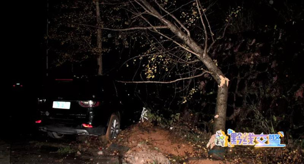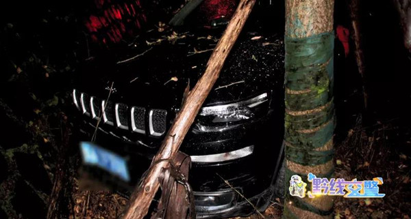 10月15號凌晨2點左右,民警來到事發路段時看到,一輛越野車斜停在花壇上,駕駛員卻不見了蹤影。