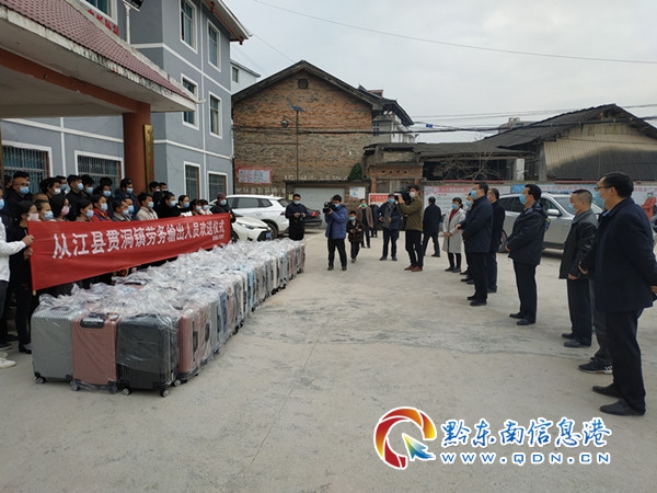 桑維亮、羅強(qiáng)等人為從江縣貫洞鎮(zhèn)外出務(wù)工人員送行