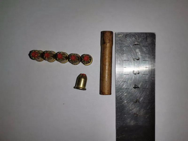 男子從隨身的黑色挎包內,拿出一枚長4.5厘米的火雷管和裝修用的6顆射釘槍空爆彈,一并交給民警。