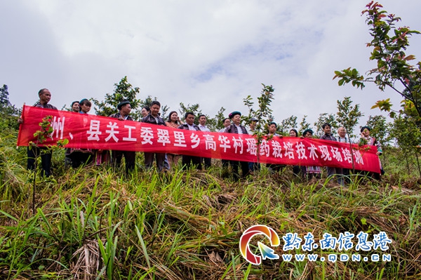 8月11日上午,黔東南州關(guān)工委副主任萬中元、楊詢、秘書長吳素萍,從江縣委組織部部長羅安春等領(lǐng)導(dǎo)出席翠里鄉(xiāng)高華村瑤藥種植儀式。翠里鄉(xiāng)黨政班子領(lǐng)導(dǎo)和來自高華村的50余名瑤族村民共同參加了該儀式。