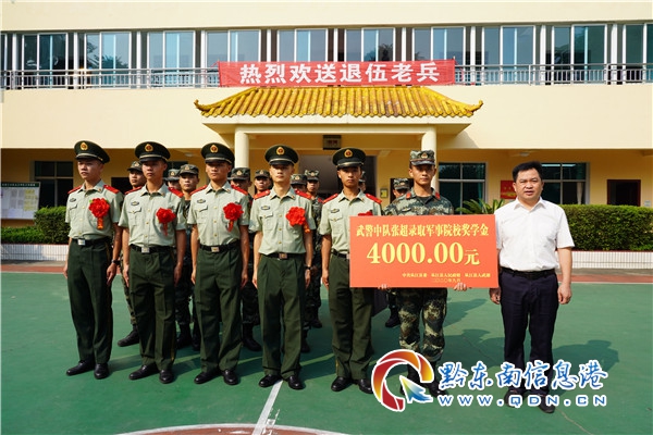 在獎金發放儀式上,縣人武部政委畢戩旭代表縣委、縣政府和縣人武部對張超同志表示祝賀,希望他到學院后繼續努力學習,早日學成歸來,將來為國防建設做出更大的貢獻,并送上獎學金4000元。縣退役軍人事務局也送上價值400元的慰問品。