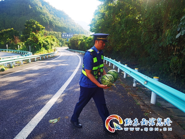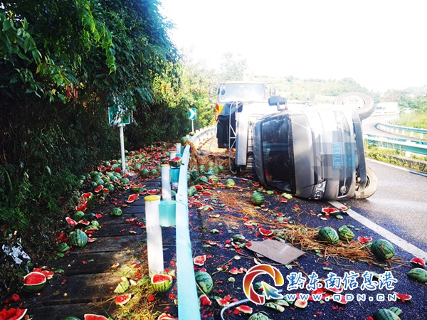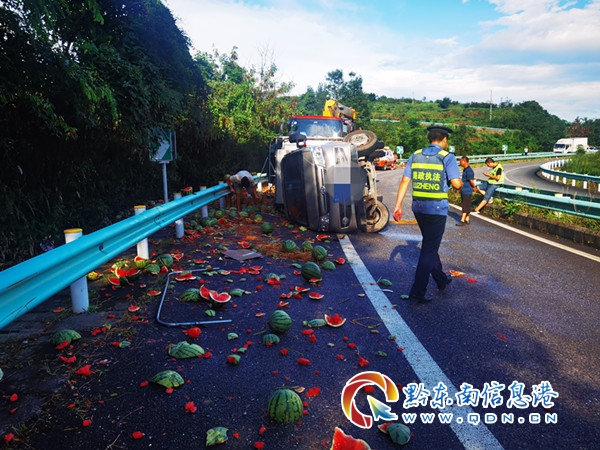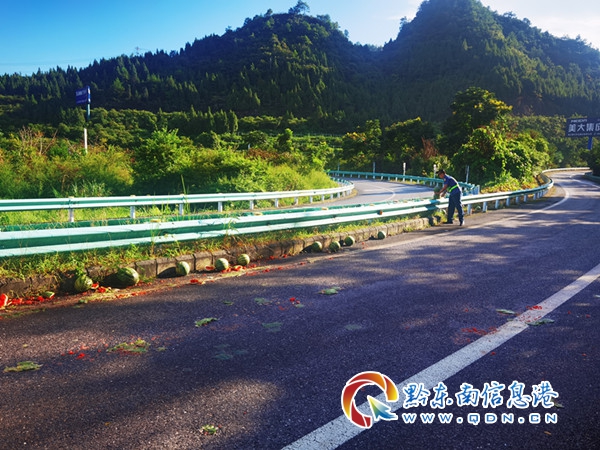 17時20分,路政員到達現場,發現一輛貨車側翻在匝道上,地上散落著西瓜,幾乎鋪滿整個匝道,所幸無人員傷亡,且當時處于周末返程高峰期,車輛不時的從旁邊通過,情況十分緊急,處置不當很有可能會發生二次事故。見此情況,路政員立即聯合現場相關單位一起對事故現場進行道路安全渠化。開展救援的第一步就是“挽救”西瓜,減少貨主損失,路政員幫助駕駛員挑選完好的西瓜,并組織養護站工作人員及時對路面進行清理,應急救援中隊工作人員對貨車開始施救,17時50分,在轄區“一路三方”的共同努力下,救援結束,快速恢復道路正常通行。救援結束后路政員向駕駛員了解情況,駕駛員說:“在進入匝道的時候車速較快,導致車輛失控發生側翻,好在系了安全帶才沒有受傷�,F在不僅生意沒有做成,還虧了車上兩噸的西瓜,十分后悔。”