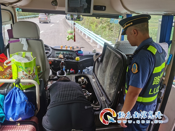 9月8日15時01分,凱里高速公路管理處丹寨路政執法大隊路政員驅車巡查至S62余冊高速K141+000下行時,發現一輛客運車開著危險警報閃光燈停靠在應急車道上,應急車道上還站著許多人,身邊車輛高速行駛而過,情況十分危險,路政員立即上前將行人勸離安全位置并了解情況。