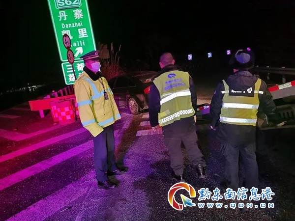 由于低溫天氣依舊,路面已有凝凍情況,道路不具備通行條件。路政員及時與“一路三方”進行協(xié)商,決定立即啟動凝凍天氣道路保暢應(yīng)急預(yù)案,2020年12月15日20時40分起對S62余冊高速K79+000至K146+659進行雙向臨時交通管制,轄段凱里北收費站、凱里南收費站、青曼收費站、興仁收費站、丹寨收費站只出不進。