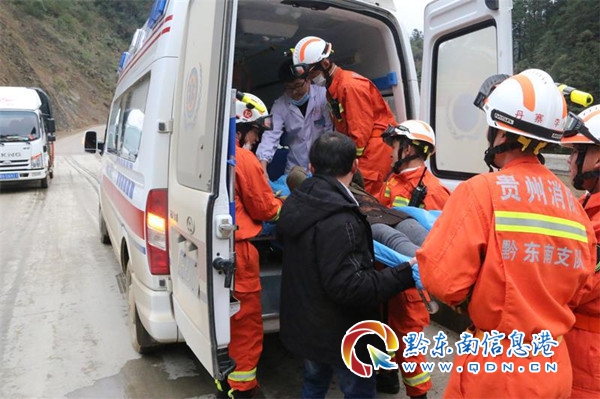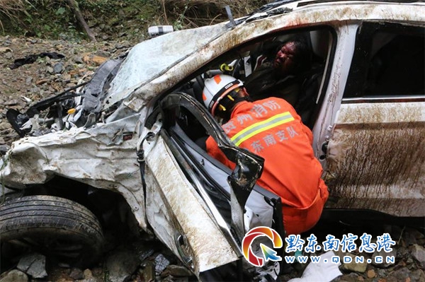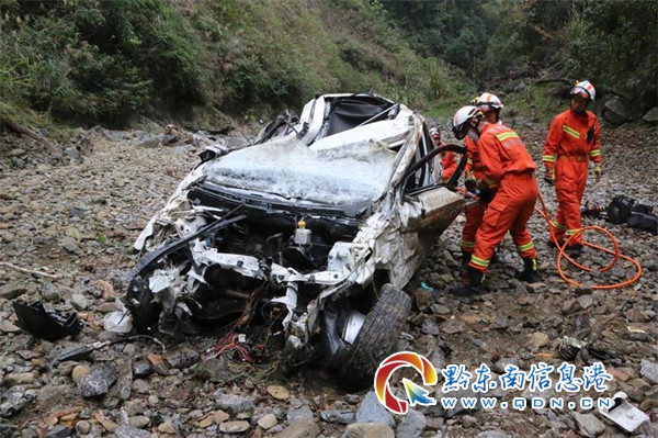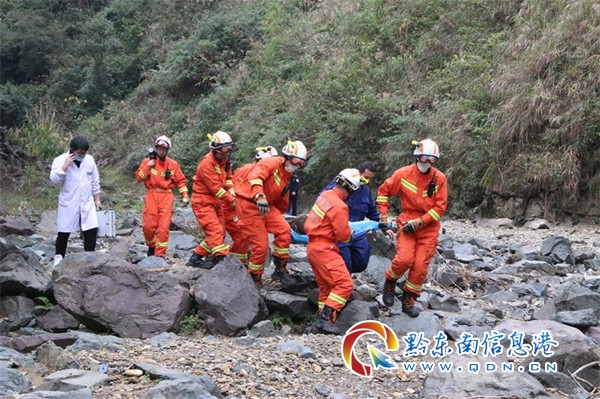 12 時 31 分,丹寨消防救援大隊到達現場,指揮員立即詢問現場知情人員被困人員具體位置。知情人介紹,事故車輛失控沖下山崖,由于該季節烏灘河水位下降,河水枯竭,事故車輛墜落在河床上,需要沿著河床步行 15 分鐘才能到達。