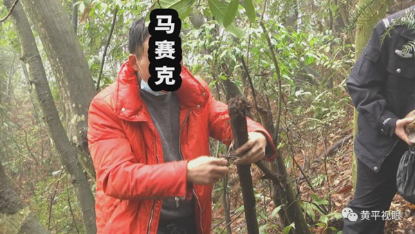 接著我們一起前往鄧某非法狩獵現場,在當地村民的見證下,對鄧某非法狩獵現場進行指認,并將其安放在山林中的鋼絲繩獵套全部撤除。