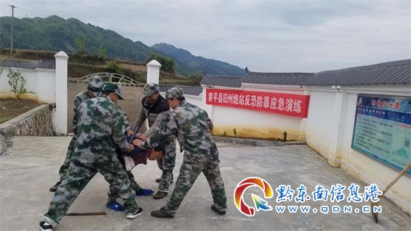 本次演練模擬1名歹徒持械翻越圍墻進入炮站盜取物資,炮站值班民兵發現后立即向其他值班人員預警,并拿起防暴器材與歹徒進行周旋,同時安排人員立即撥打110電話報警,在全體民兵的通力配合下將歹徒制服,并稱道交給當地派出所處置。