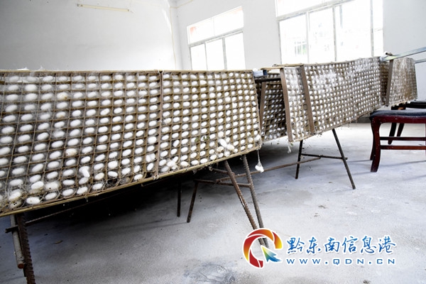 本網(wǎng)訊 “快來看呀,蠶寶寶吐絲上簇了,結成的白色蠶繭如鴿子蛋大小,像極了一個個銀元寶......”近日,筆者跟隨重興村同步小康第一書記趙學海的腳步走進黃平縣重興正帆蠶業(yè)專業(yè)合作社,蠶房內數(shù)百張方格簇整齊排列,蠶寶寶已上簇結繭,預計再過兩三天后便可采摘蠶繭。