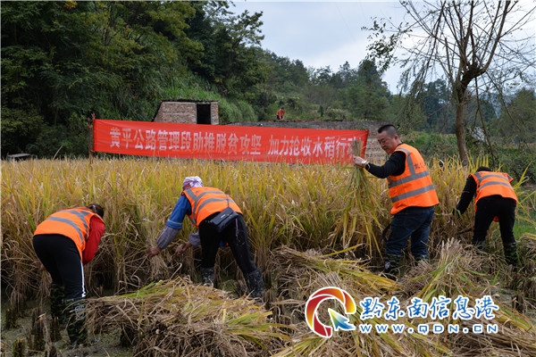 本網訊  連綿不絕的秋雨給今年的秋收工作帶來極大困難,黃平公路管理段按照省、州及黃平縣委、縣政府的安排部署,調動一切力量,與時間賽跑,全力做好水稻搶收工作,確保糧食顆粒歸倉。