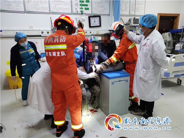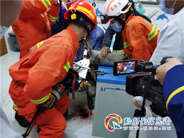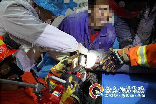 經初步了解,傷者是修建劍容高速的工人,在操作砂石傳送機時被下方軸承卡住,工地負責人立即斷電撥打120送往醫院救治,由于醫院設備限制無法破拆救援,便撥打119請求消防救援人員前往醫院協助營救。(梁文)