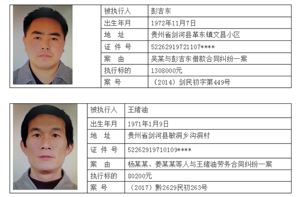 失信被執(zhí)行人違反限制消費(fèi)令進(jìn)行消費(fèi)的行為屬于拒不履行人民法院判決、裁定的行為,經(jīng)查證屬實(shí)的,依照《中華人民共和國民事訴訟法》第一百一十一條之規(guī)定,予以罰款、拘留;構(gòu)成犯罪的,追究其刑事責(zé)任。現(xiàn)將下列失信被執(zhí)行人予以曝光,請社會各界予以監(jiān)督。