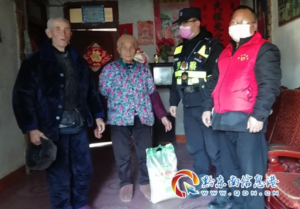 2月15日晚隆里派出所民警和古城義巡隊在巡邏的時,得知隆里所村南門口83歲的老人江高遠和82歲的老伴李德芬因為出門不便沒米了,于是隆里派出所所長楊興智自淘腰包買了一袋米,與古城義巡隊員一起給江高遠夫婦送去。江高遠夫婦見后激動地說:疫情防控以來,哪里需要,哪里就有你們隆里派出所民警和古城義巡隊員。不論是在街頭、檢測點,還是在交通卡口,你們一個個忙碌的身影構筑了隆里一道道亮麗的風景線,同時為群眾構筑了一道道堅固的生命防線。你們不但認真排查、暖心宣傳,承擔執勤、勸導任務,還是咱們群眾身邊的 “貼心人”。(劉芳俊)