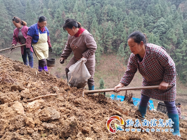 經過多方考察,結合當地濕潤溫和的氣候、肥沃的土質情況,按照“宜林則林、宜種則種”的原則,皇封村決定大力發展林下魔芋種植產業,并與2019年11月成立了以黨建為背景的黔東南州龍耳坡農業有限公司,由村支部書記龍向金任董事長、村主任王經剛為總經理。實施“企業+黨支部+基地+農戶”的發展模式,即由黨支部帶頭實施,貧困戶出土地、出勞力,公司提供產業資金,并與貴州中順魔芋開發有限公司簽訂了供銷合作協議,負責提供種子、產品銷售及保底回收等,同時還邀請了貴州省農業科技研究所生物研究魔芋研究中心專家到現場對魔芋的種植、生產、管護做專業技術指導,使魔芋產業在皇封村蓬勃發展。群眾能通過土地流轉、基地務工、利益分紅等增加收益,已是信心滿滿,下定決心、鼓足干勁,目前已發展林下魔芋50畝,數萬斤魔芋種已實現了滿栽滿種。