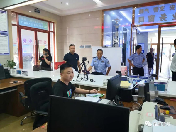 圖為2020年7月3日上午,錦屏縣人民政府副縣長、公安局黨委書記、局長王云到錦屏戶政服務中心檢查“多拍優選”設備應用和服務群眾情況。