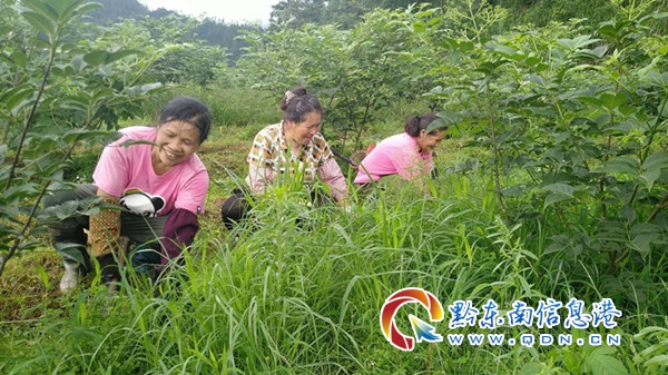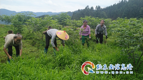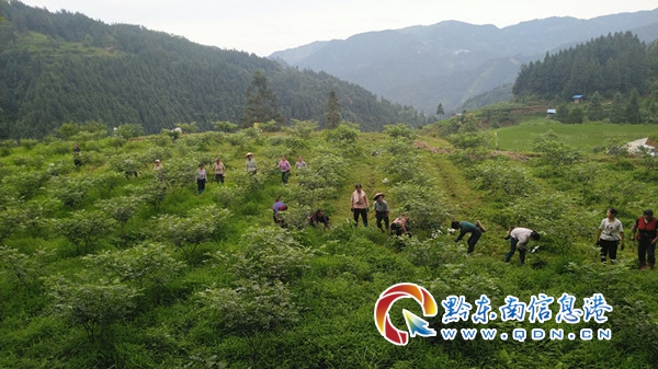 “高舟村種植吳茱萸200畝,去年部分掛果,今年株株花苞滿枝,為確�;ㄩ_如許、花落碩果累累,合作社及時組織村民除草施肥,每日支付給大家80元工錢,守在家門口就能就業有錢掙,入股的吳茱萸也豐收在望,大家喜上眉梢,邊干邊唱,難掩內心的喜悅。”高舟村主任羅邦京指著吳茱萸樹下躬身干活山歌作伴的群眾補充道。